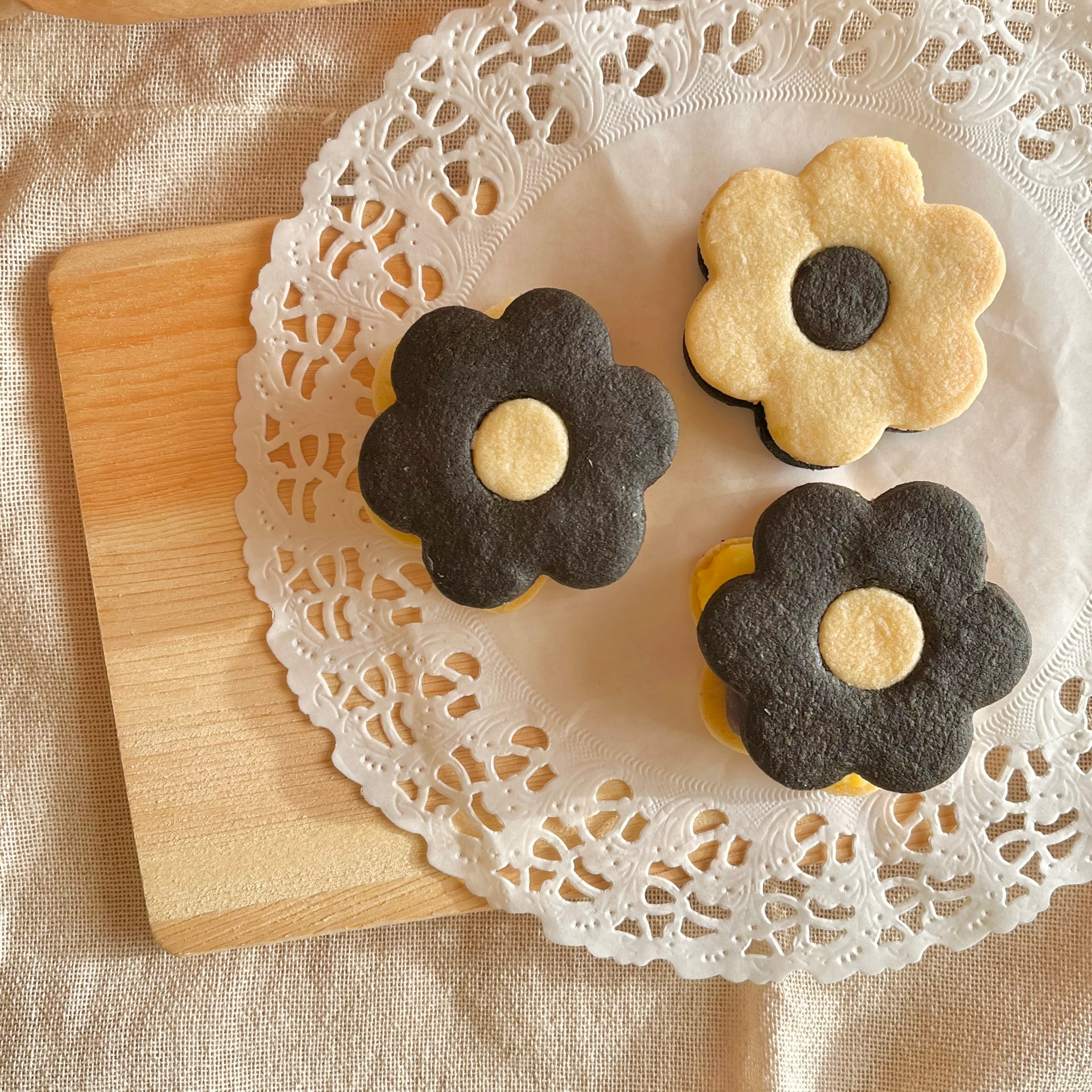 【バレンタイン限定】 お花のミルクチョコバターサンド 3個セット ココア味のお花のさくほろクッキーにオリジナルチョコレートバタークリーム。真ん中にちょっぴりバターな生チョコが入っています。 甘さ控えめなので甘いのが苦手な方にもおすすめです! 見た目にも味にもこだわってできた可愛すぎるバターサンドです♪ 消費期限 2024.2.28 7日〜10日に発送します。 クール便でのお届けとなります。 届いたらすぐに冷凍庫にいれ、 解凍は冷蔵庫で約3時間です。 解凍後はその日中にお召し上がりください。 特定原材料 小麦、卵、乳、大豆、アーモンド 原材料名 小麦粉、バター、粉糖、卵、アーモンドパウダー、スキムミルク、ココアパウダー、ビターチョコレート、ミルクチョコレート、生クリーム、食紅